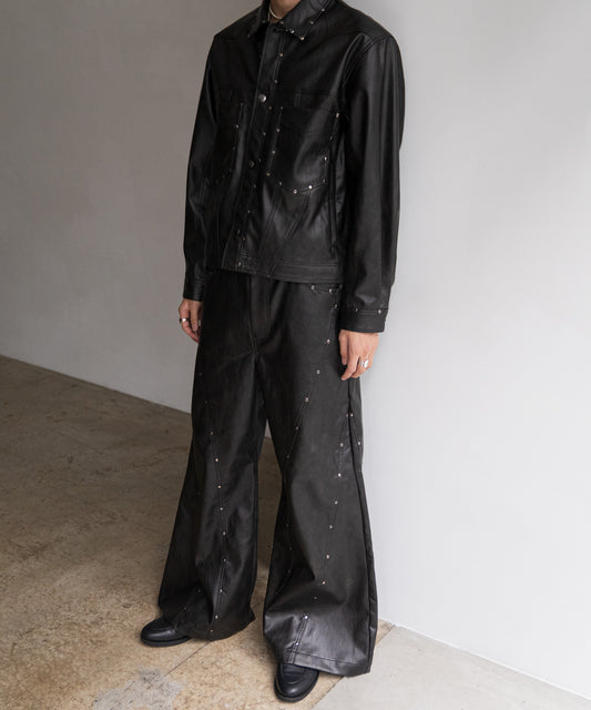 STUDS E.LEATHER PANTS