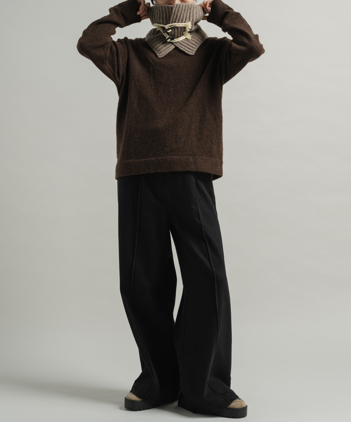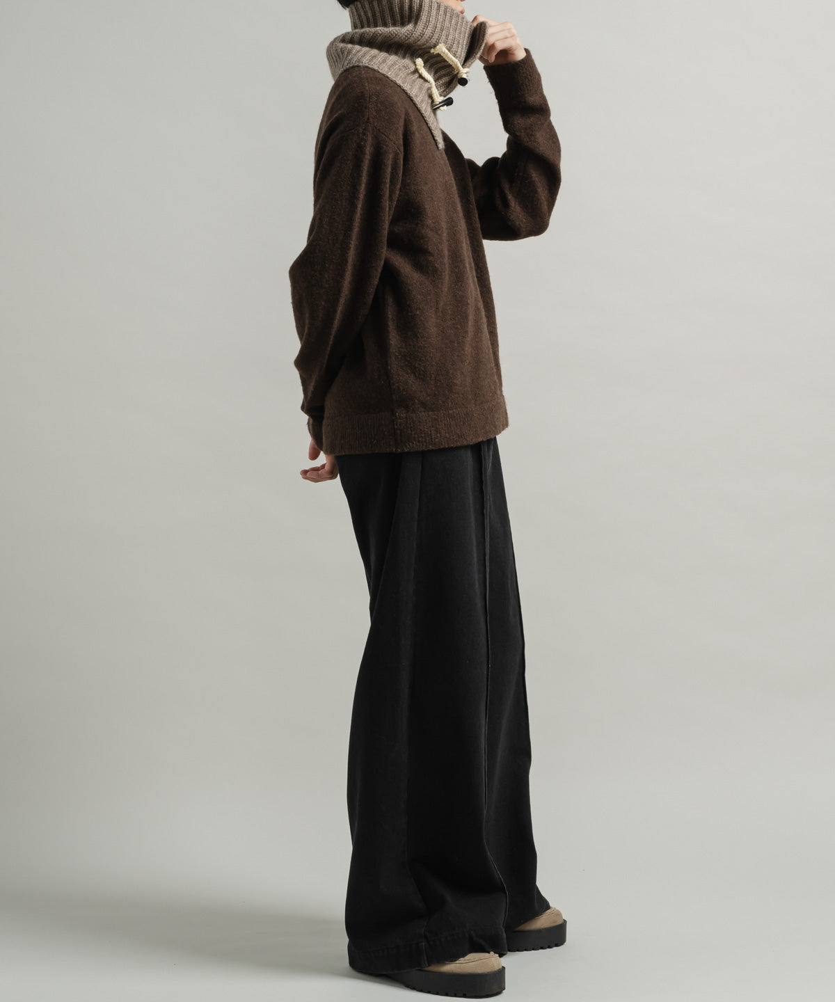 ニットブランドならではの高度な技術で編み上げられた独自のリブ地はふっくらとした弾力と奥行きのある表情を持ち、首元を包み込むような心地よさを実現しております。