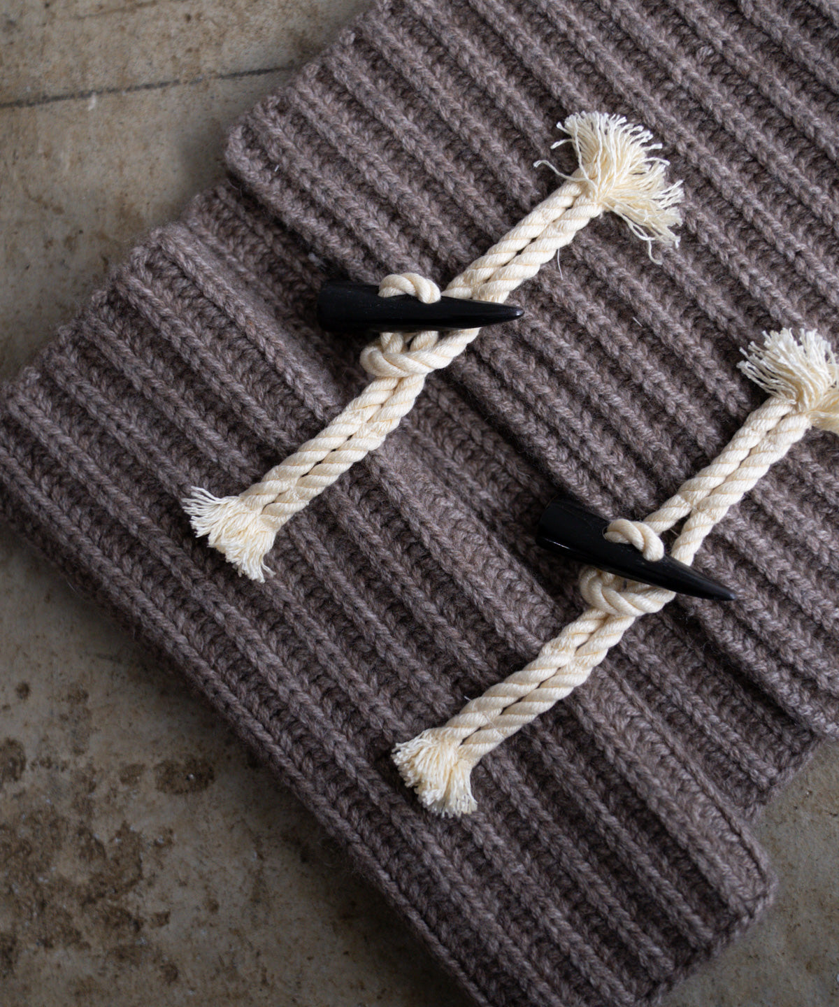 しなやかで柔らかなベビ―ウールをベースに、希少性の高いヤクとカシミヤを絶妙なバランスで混紡した糸を使用しています。