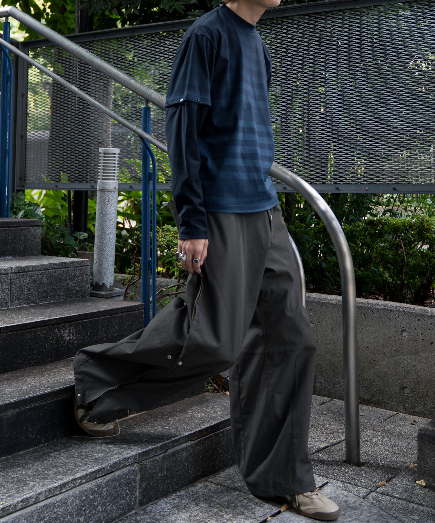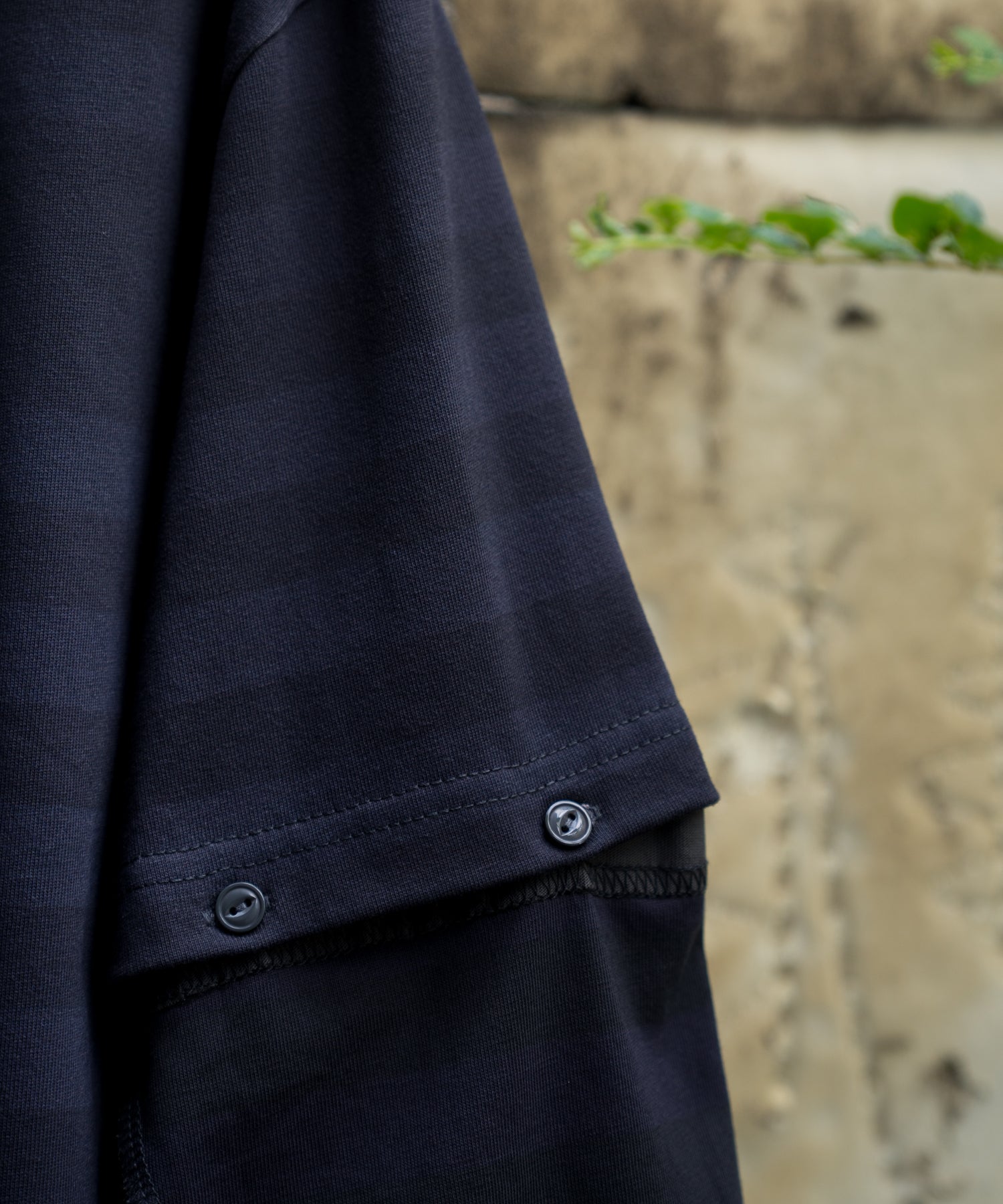 リバーシブル仕様とドッキングデザインにより、複数のスタイルで楽しめるボーダーL/S Tシャツ。