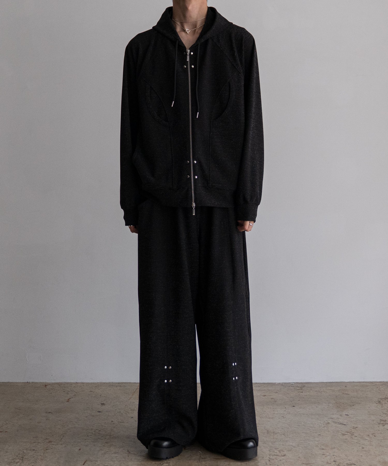 同素材を使用したジャージパンツとセットアップで着用も可能です。