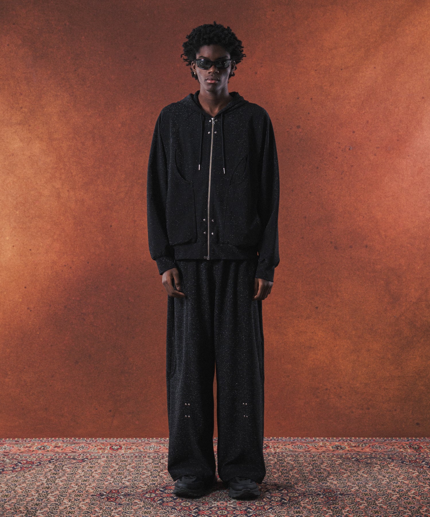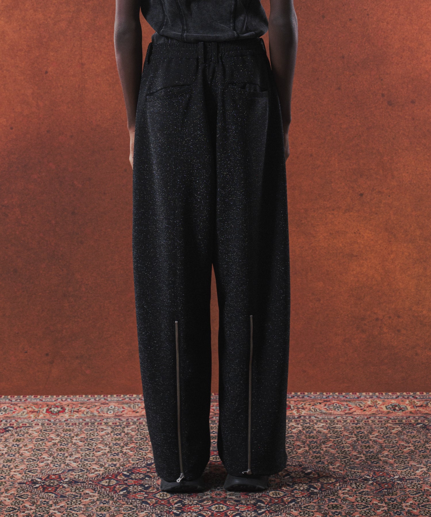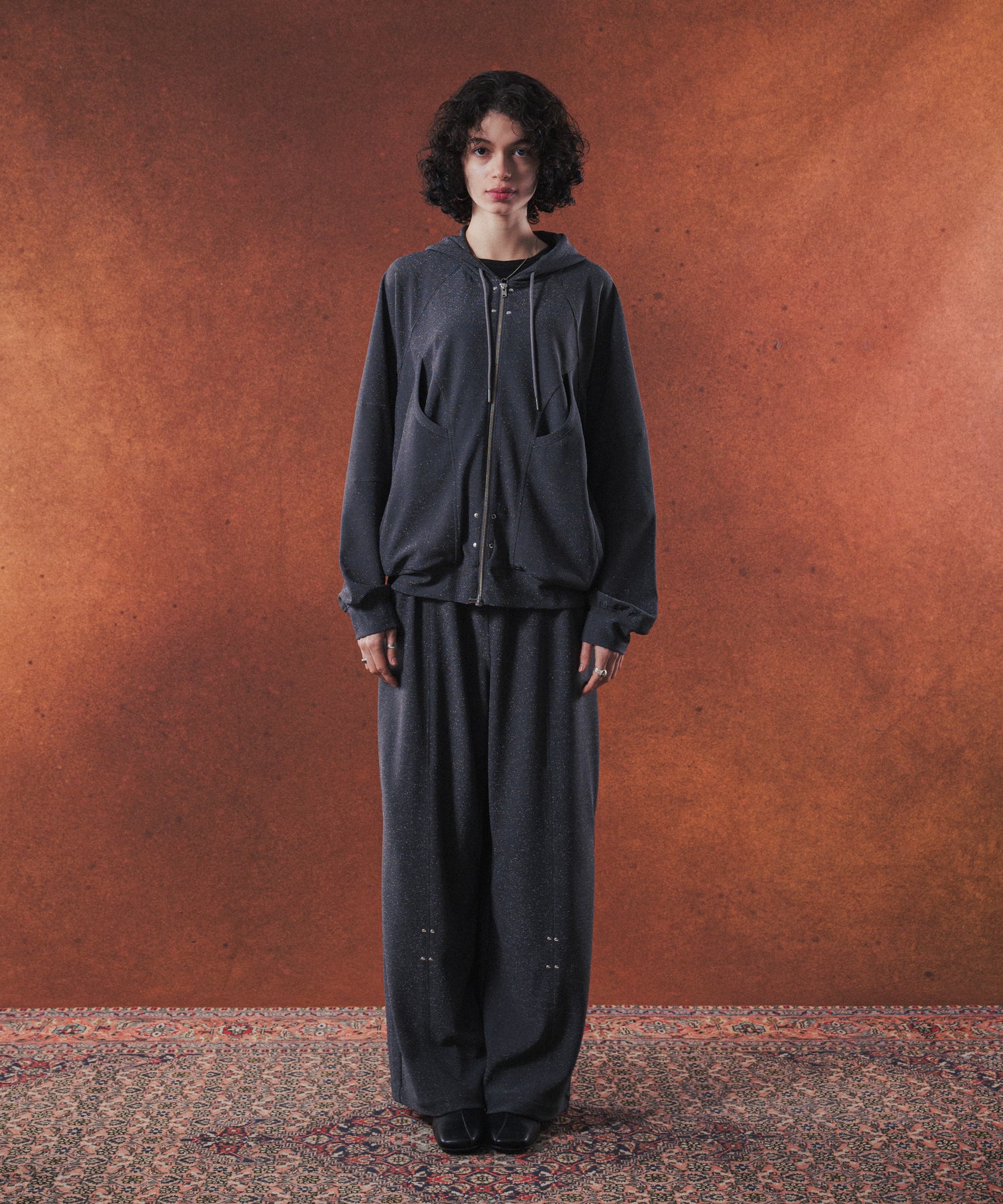 素材には微光沢のあるラメ糸をブレンドしたジャージ生地を使用。