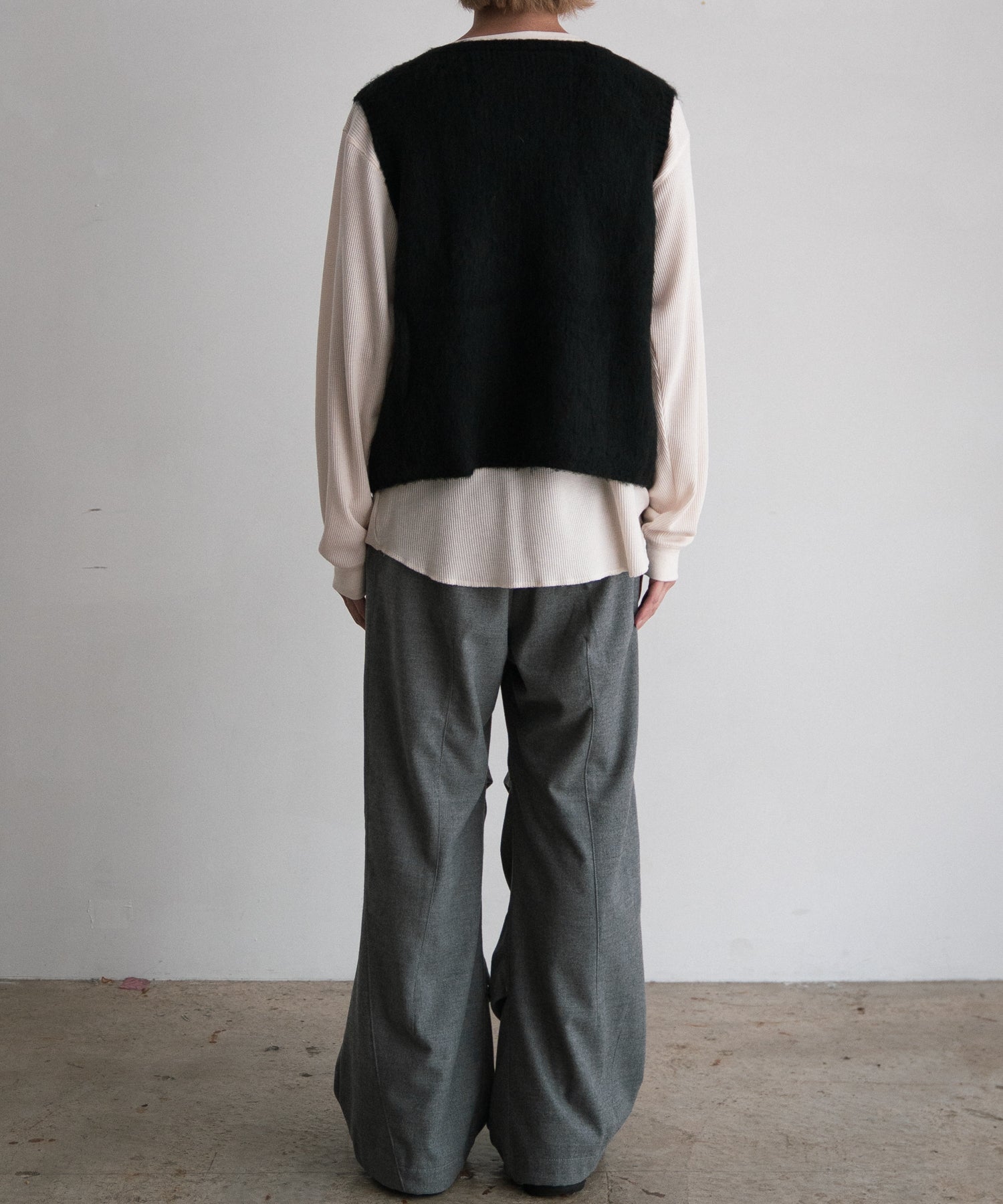 7ゲージの片畦編みに起毛加工を施すことでふんわりとしたボリュームと立体感のある表情に仕上げました。
