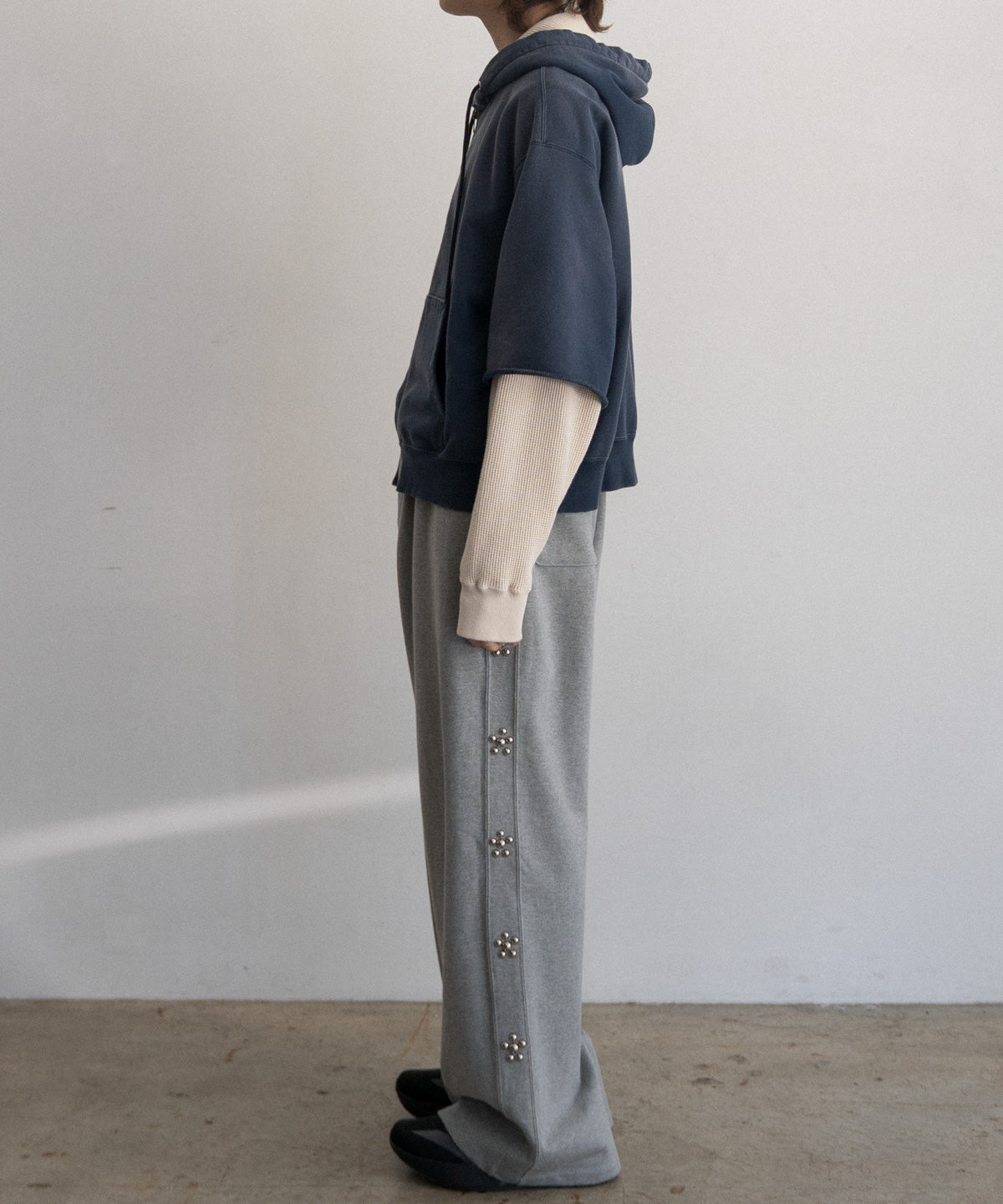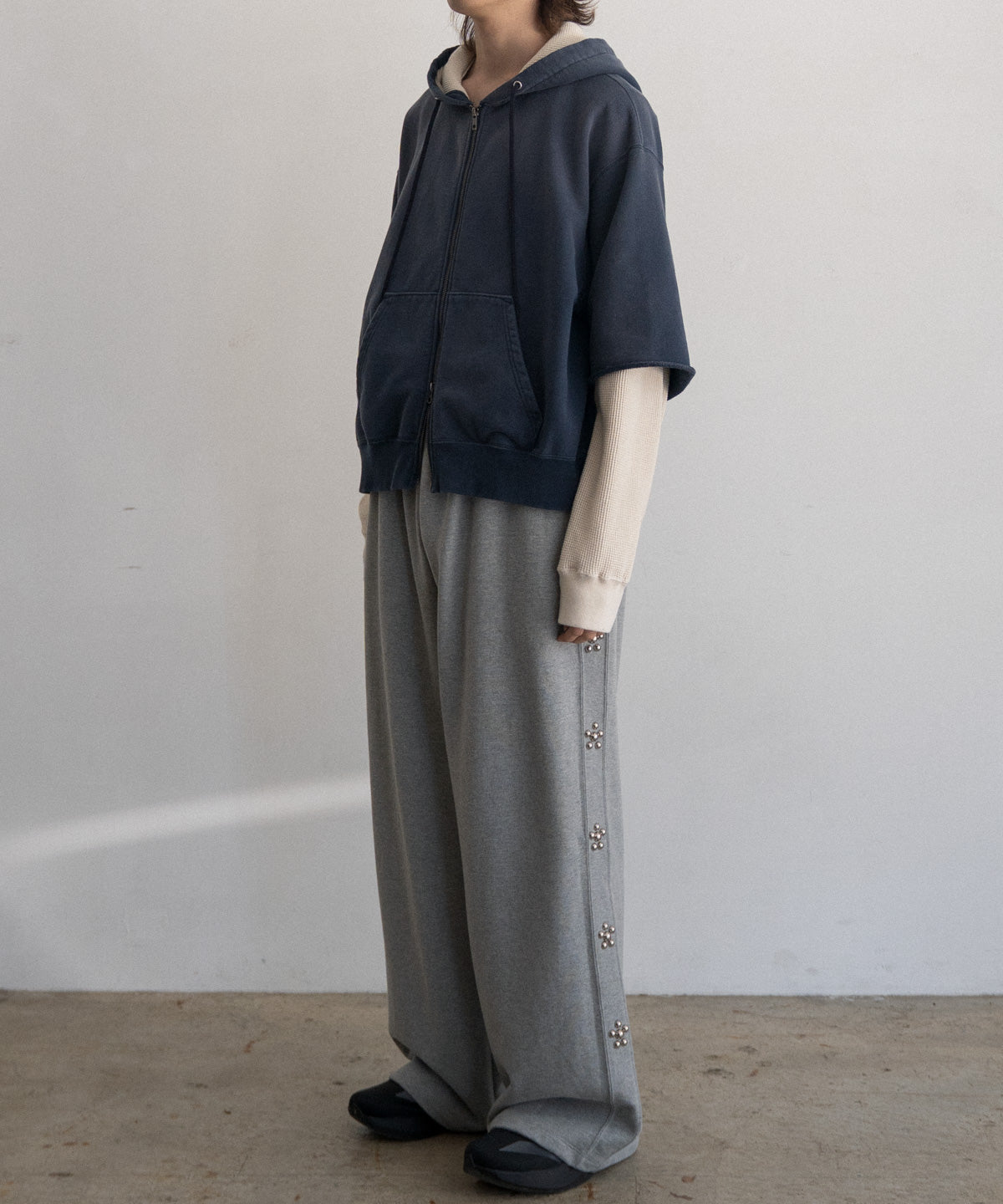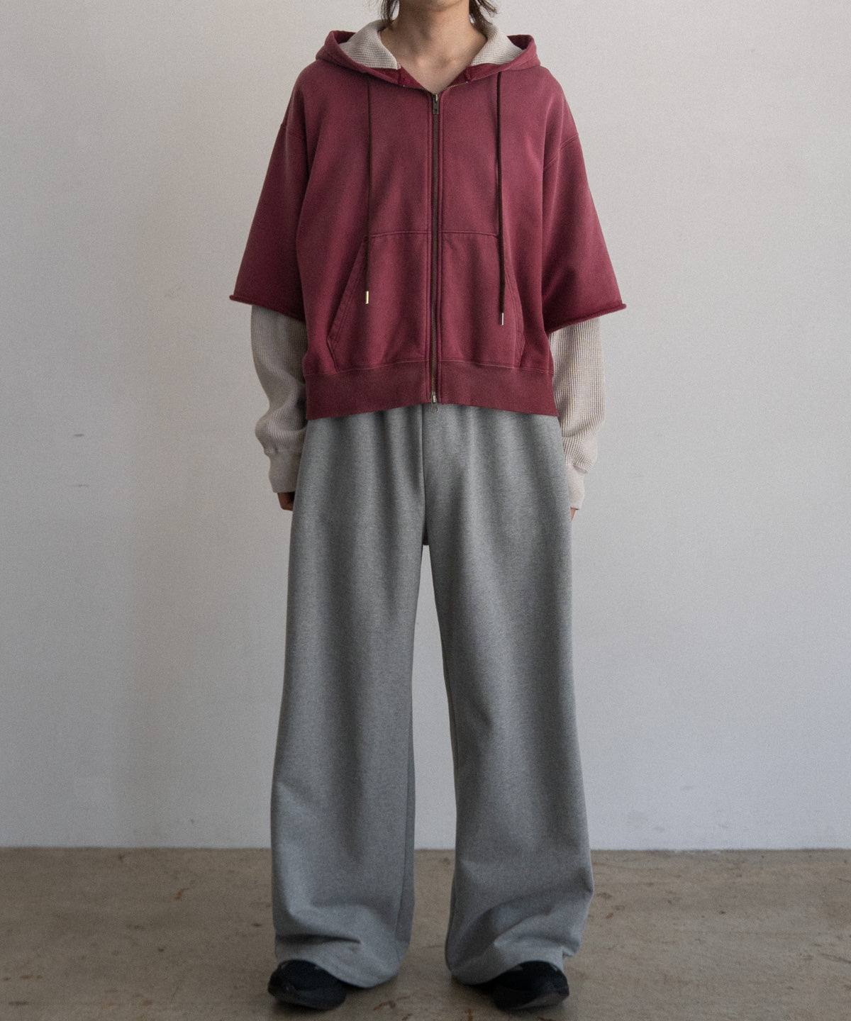 カジュアルなアイテムでありながら加工感と構築的なデザインによりモードな印象も併せ持つジップフーディーです。