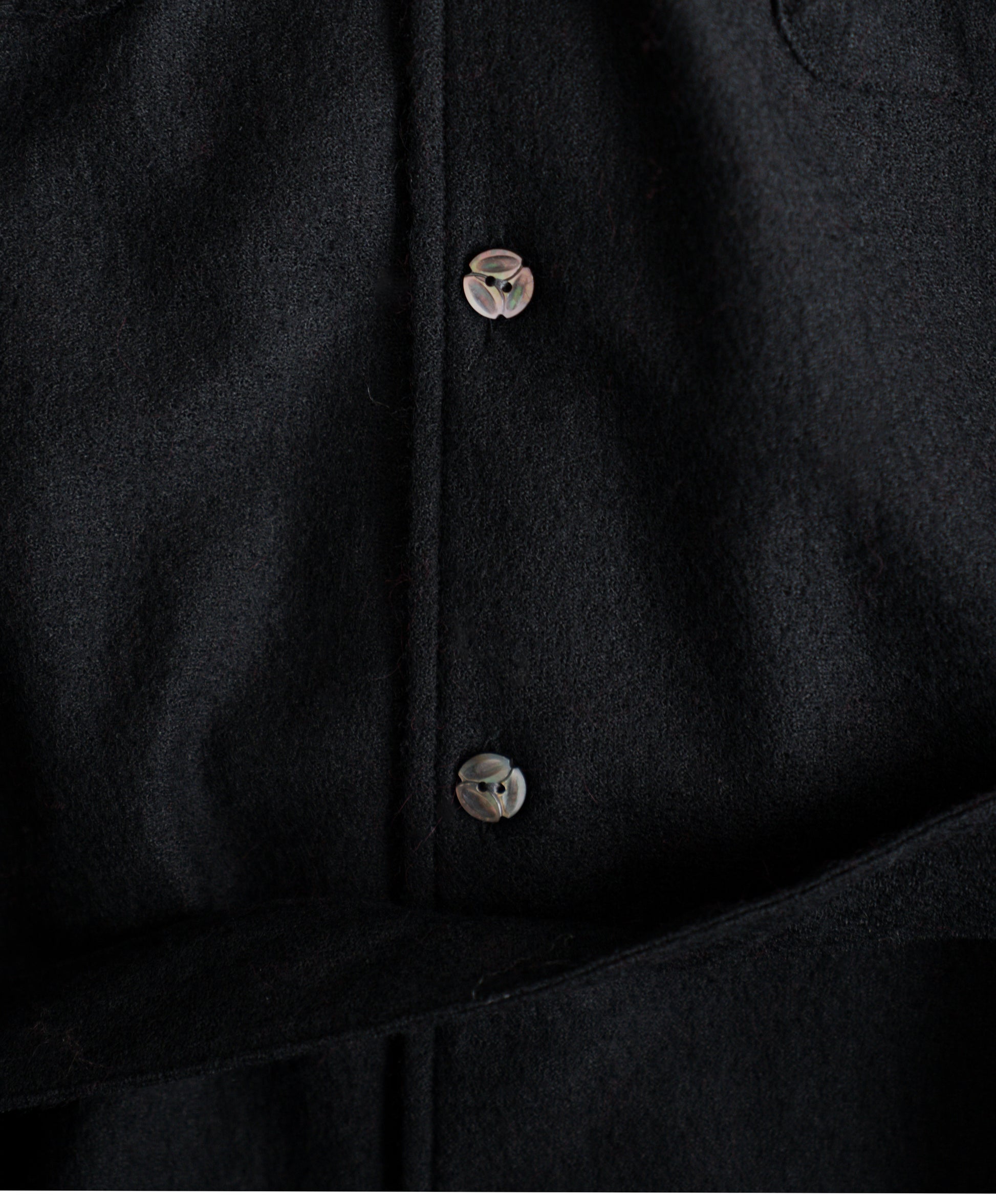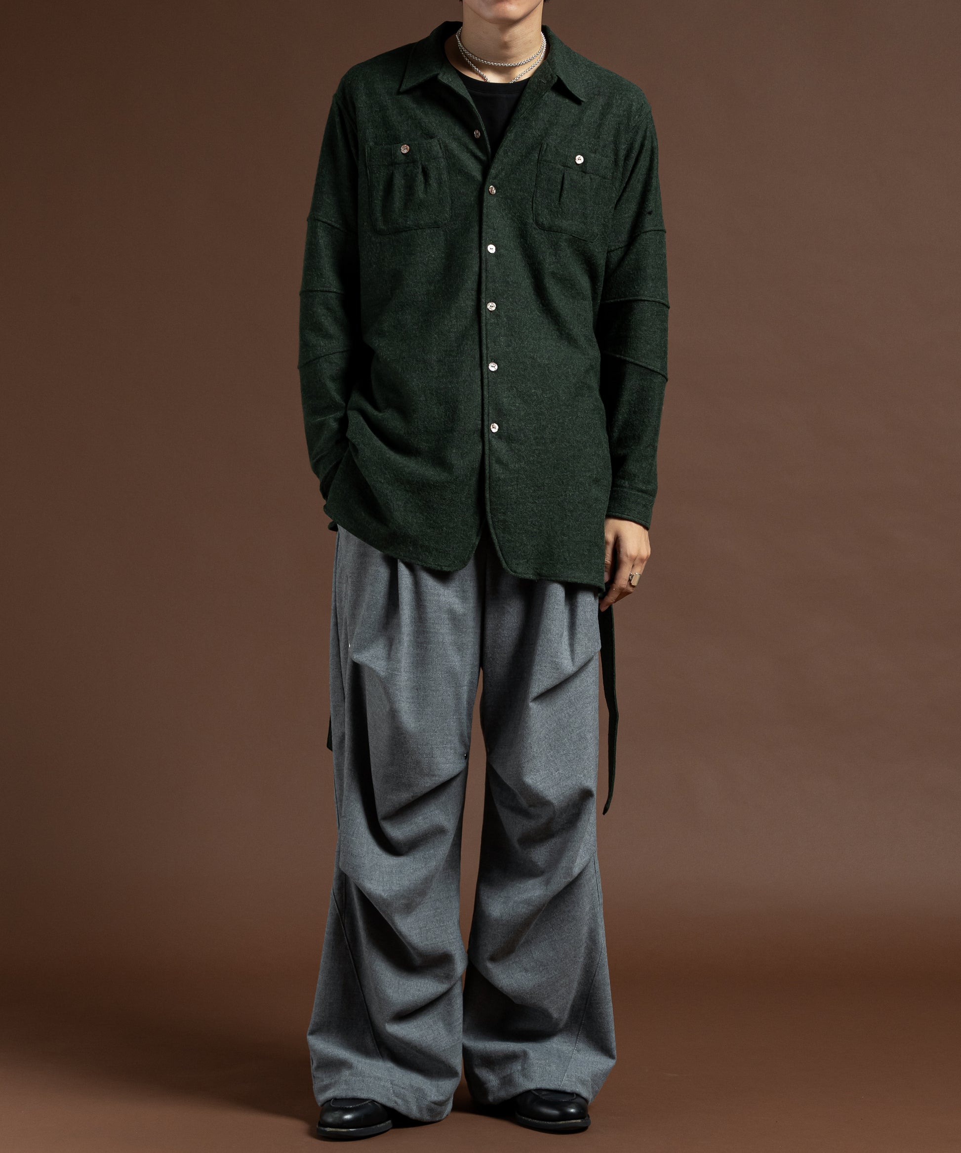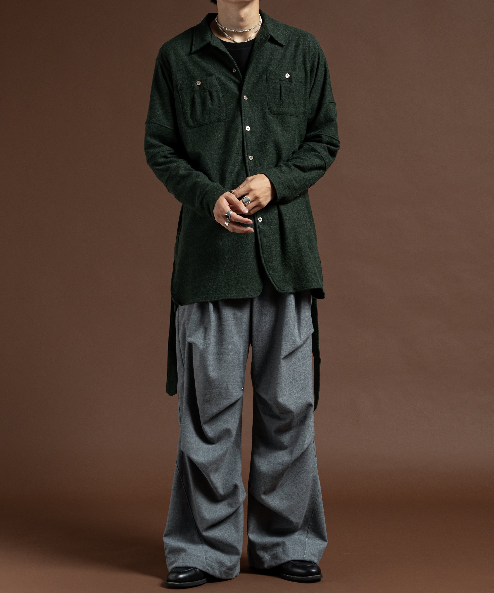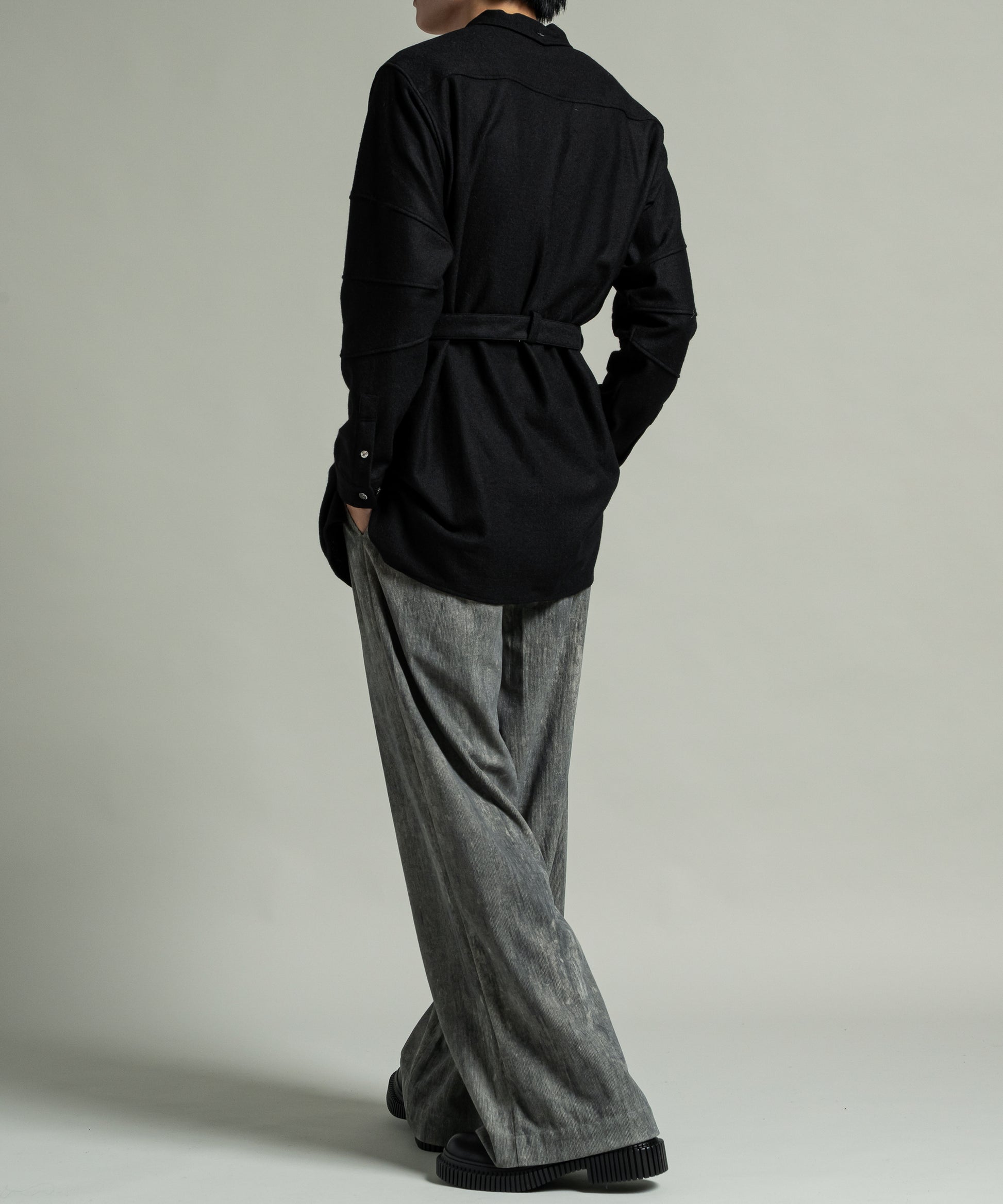 軽さと温かみを兼ね備えたウールポリエステル素材を使用したロングシャツ。