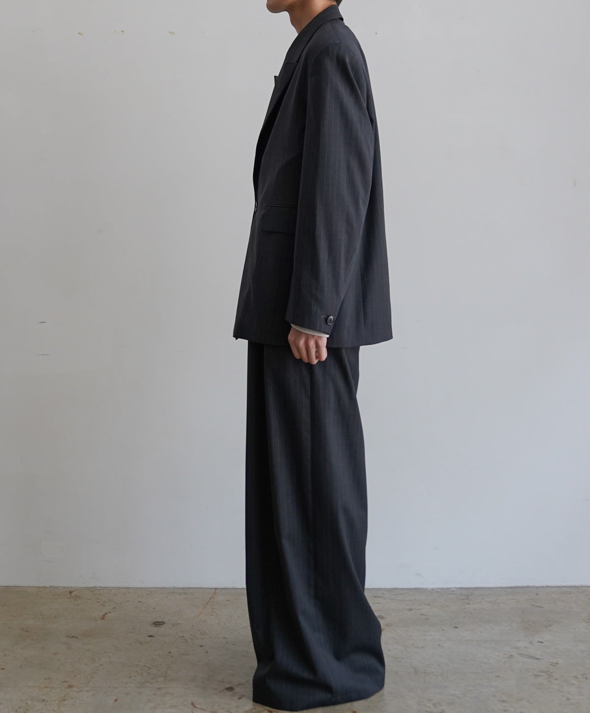 全体は程よくゆとりを持たせたリラックスフィットで堅さを抑えつつ現代的なバランスに仕上げています。