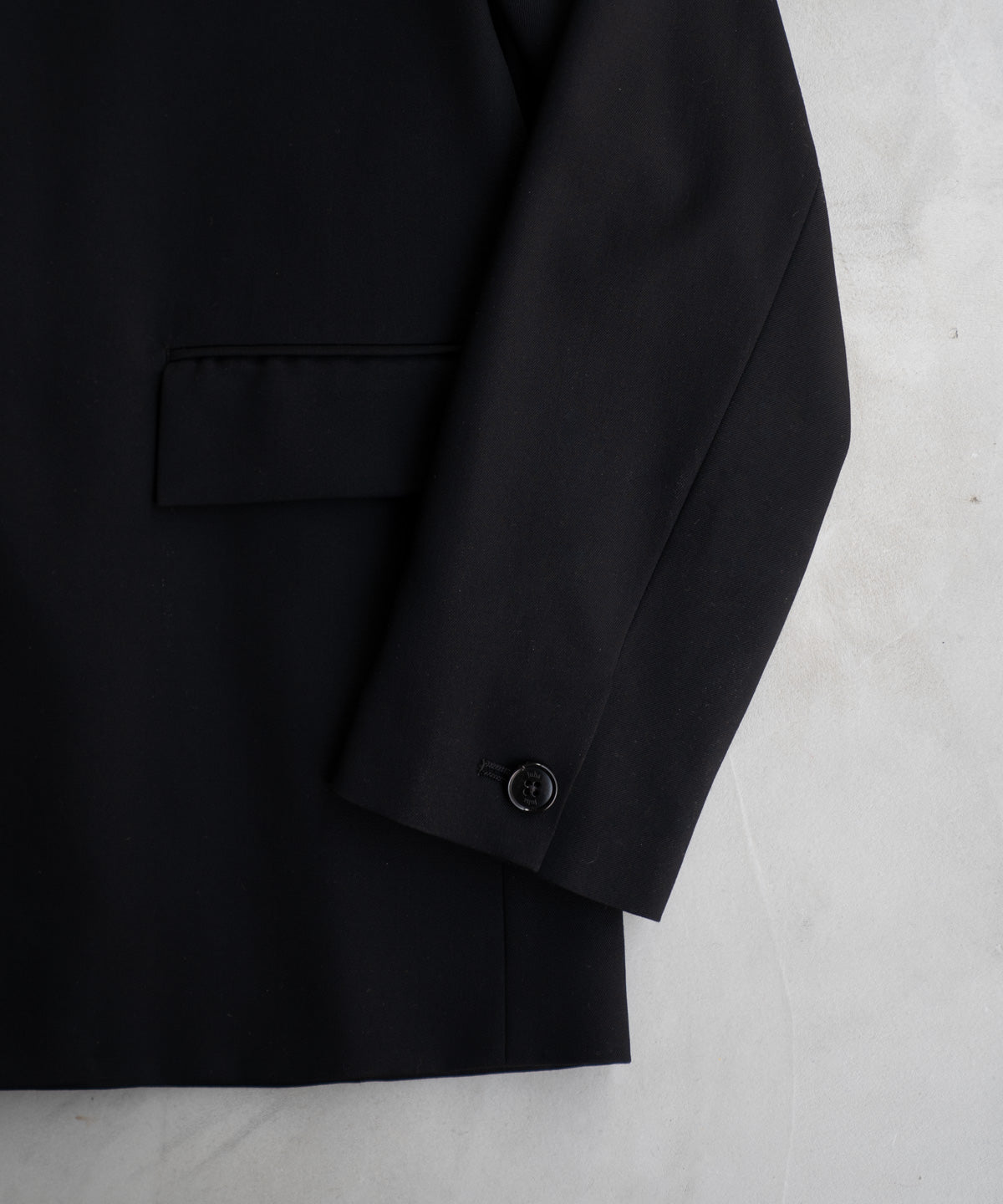 やや低めに設定したゴージラインと約10mm厚の肩パッドが生み出す直線的なフォルムにより、端正でありながら力強いシルエットを描きます。