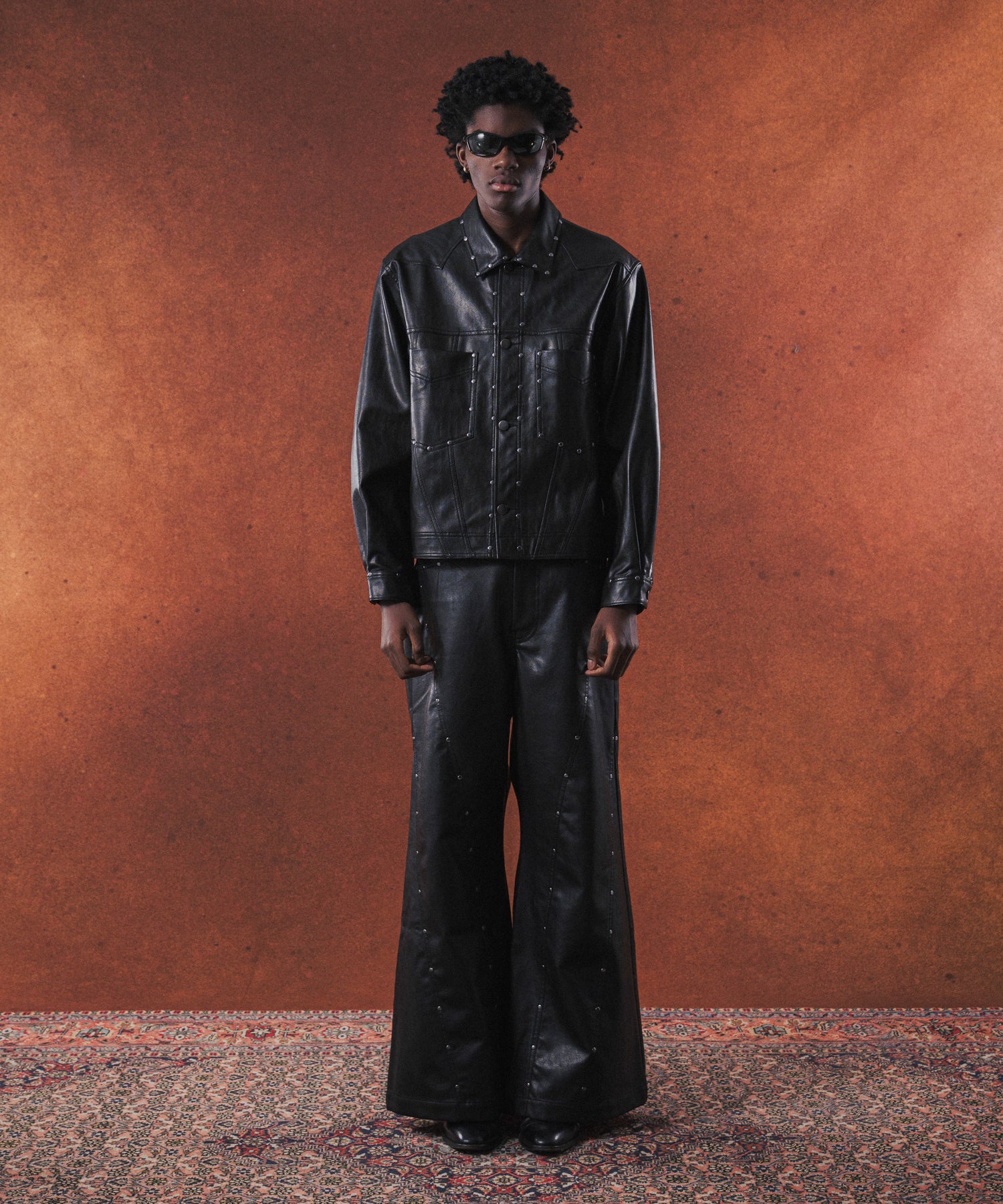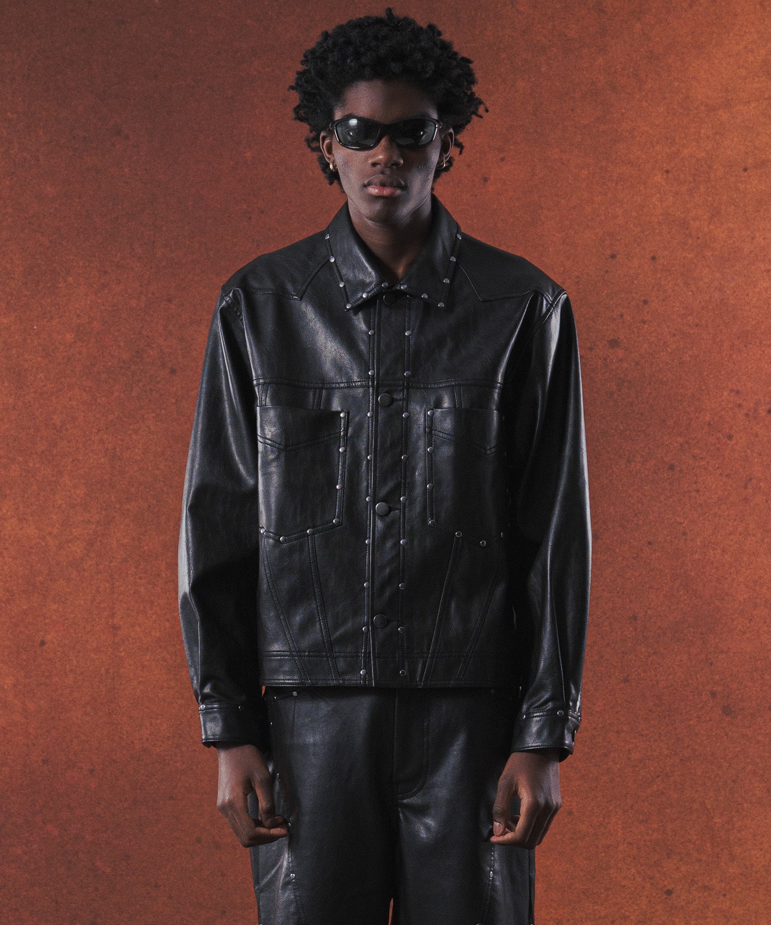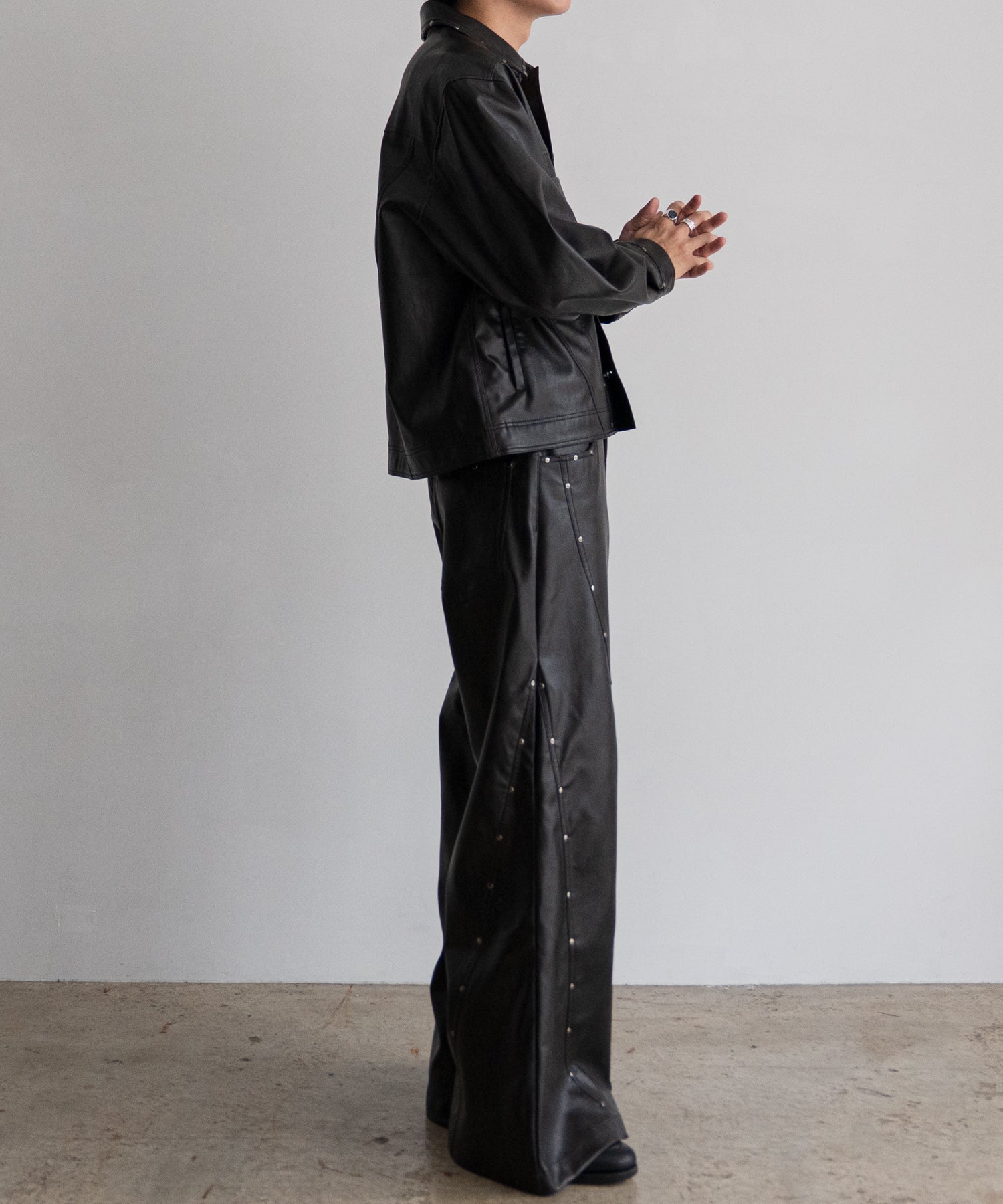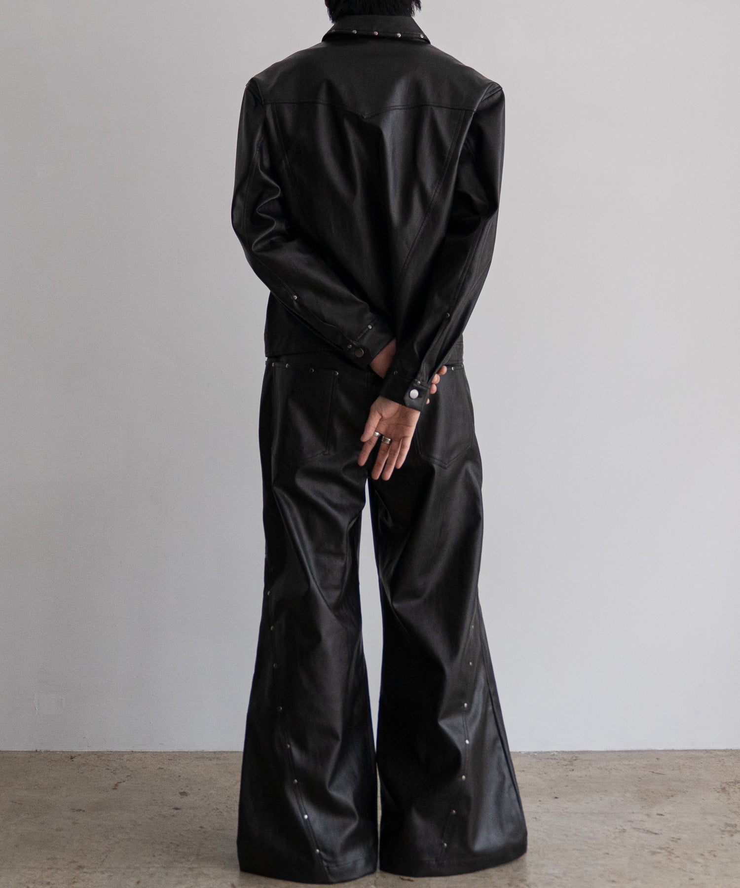 衿や前立て、ポケット部分にあしらわれたスタッズが特徴的で他にはない存在感を放つ一着です。