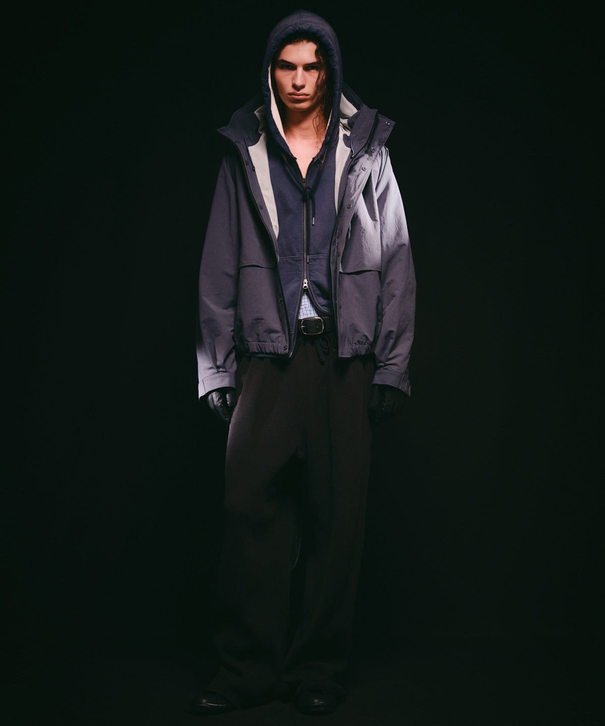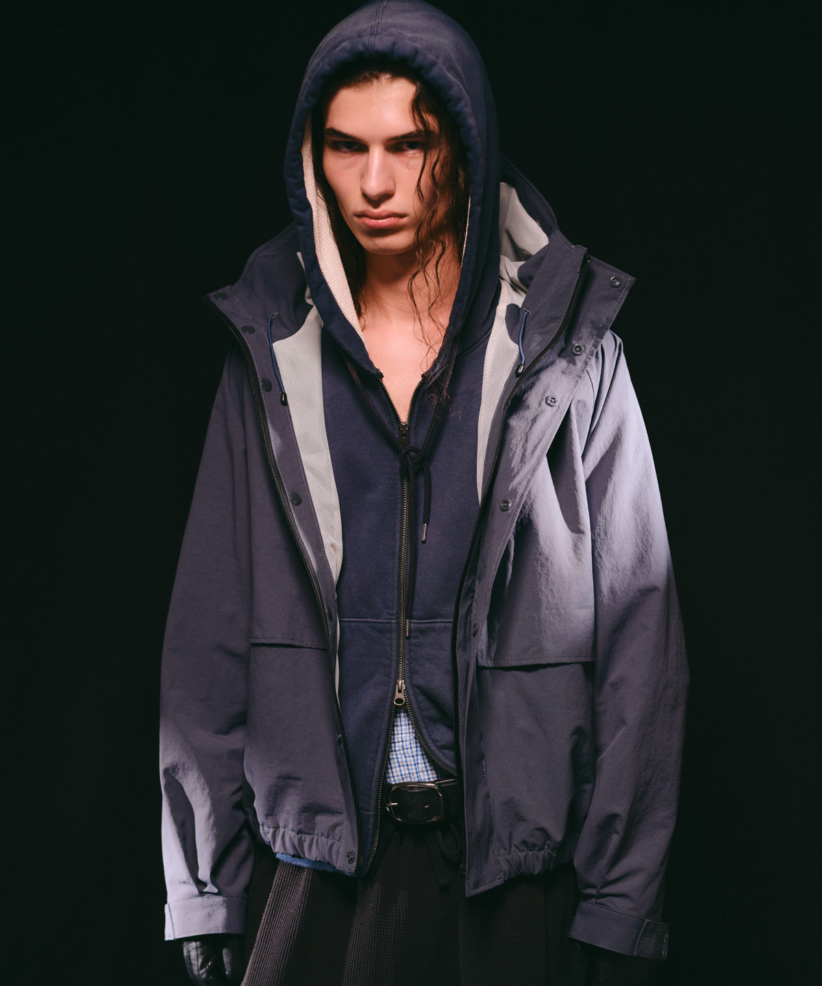 カジュアルなアイテムでありながら加工感と構築的なデザインによりモードな印象も併せ持つジップフーディーです。